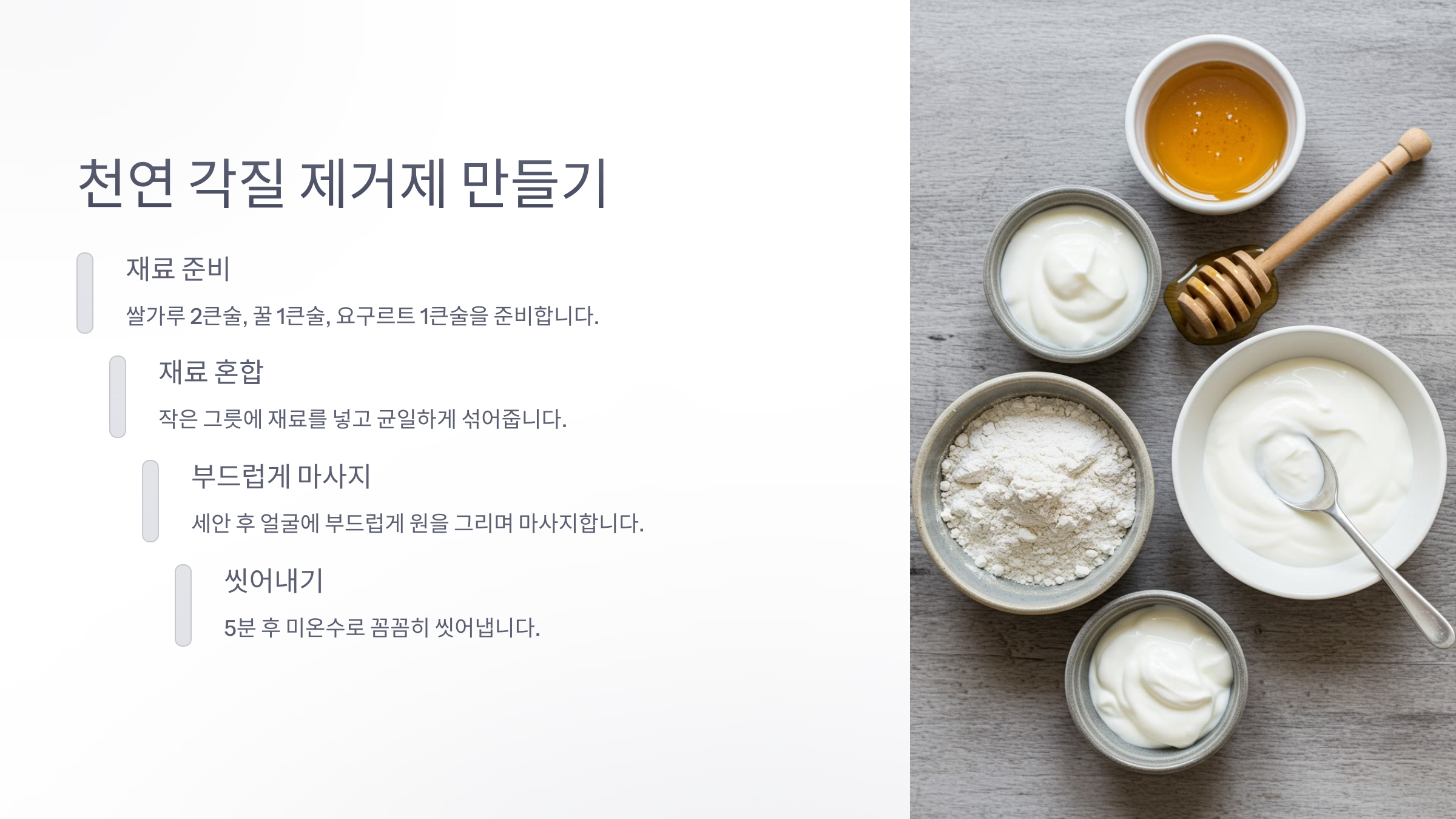 이제 집에서도 쉽게 만들 수 있는 천연 각질 제거제를 소개할게요! 다음 섹션에서 계속됩니다! 🍯