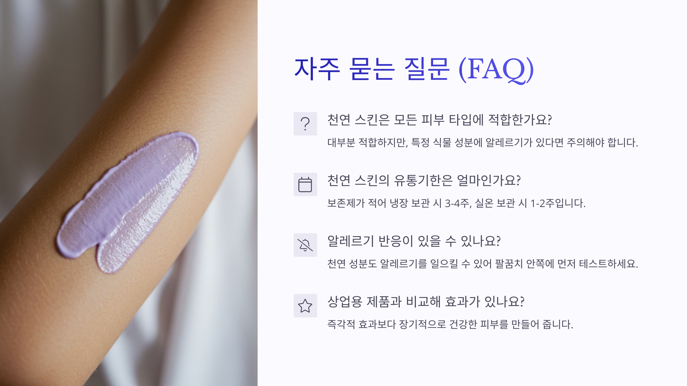 이제 천연 스킨을 더욱 다양하게 활용할 수 있겠죠? 😉 다음 섹션에서는 자주 묻는 질문(FAQ)을 정리해볼게요!