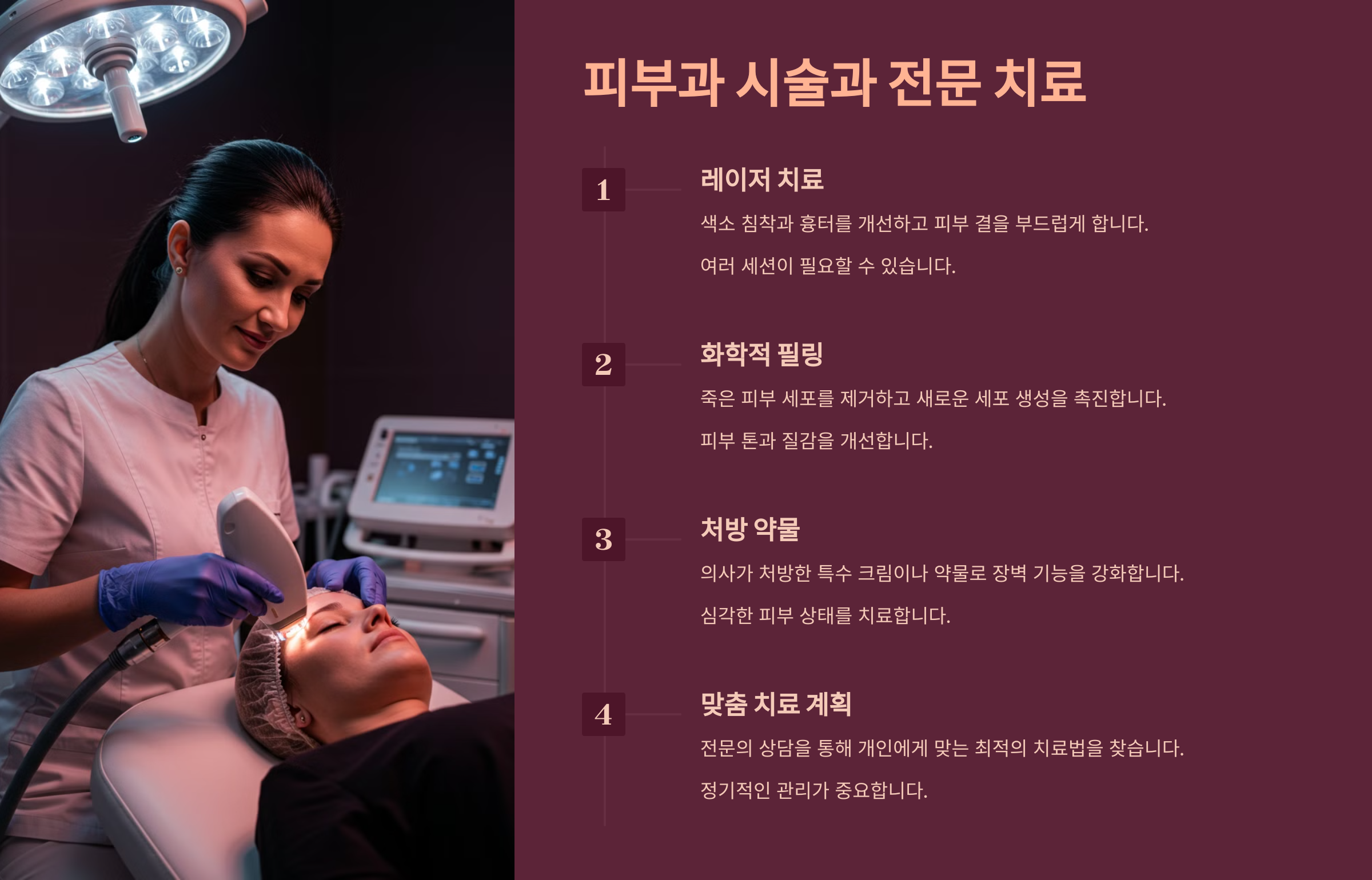 손상된 피부가 심하거나 자연적인 회복이 어려울 때는 피부과 시술이 도움이 될 수 있어요. 최신 피부과 치료법과 효과를 살펴볼게요! ✨