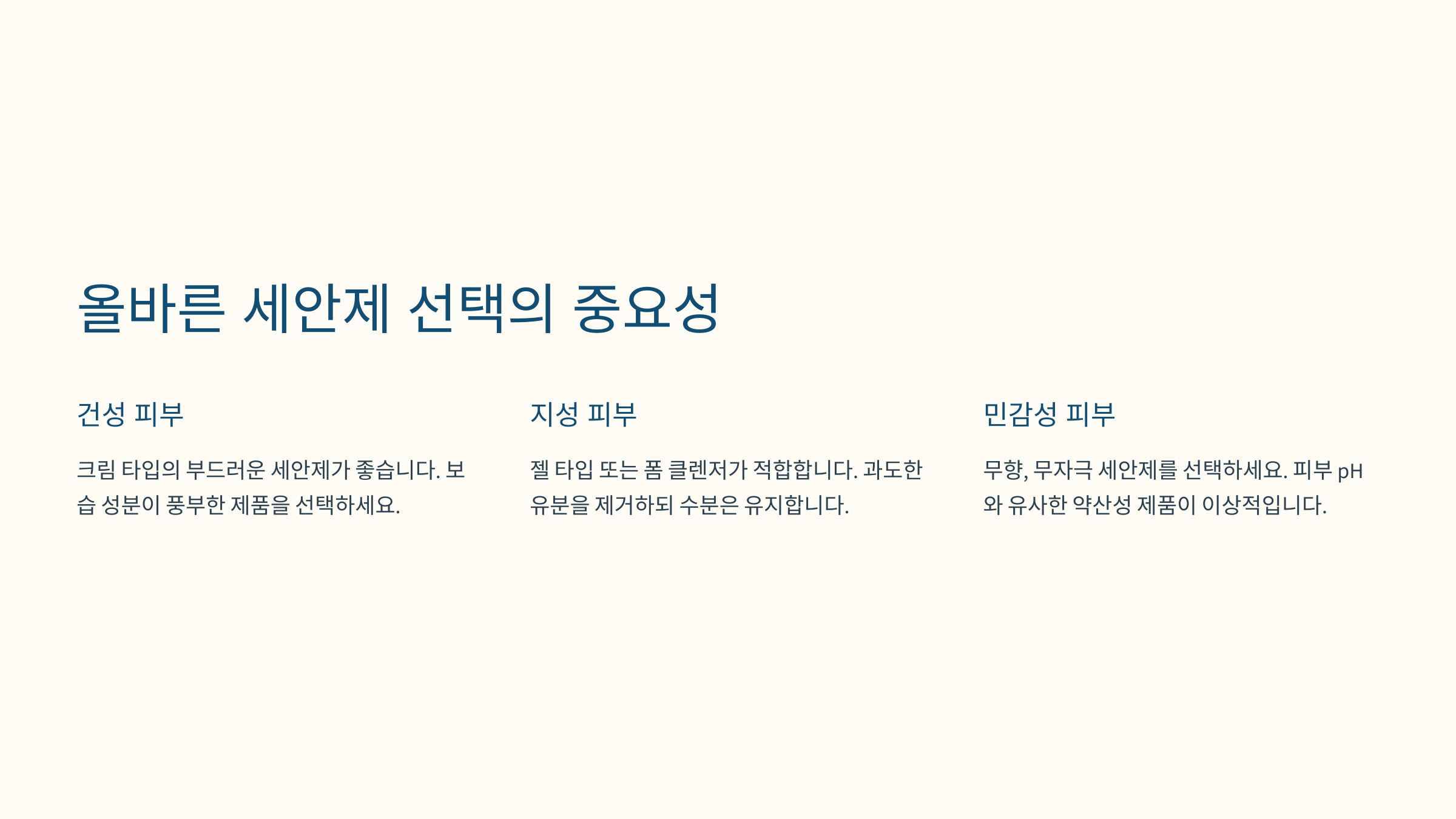 - 피부 타입에 맞는 세안제 고르기 (건성, 지성, 복합성, 민감성 등)